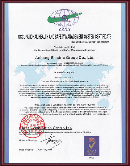 安邦電氣股份有限公司,總部位于北京市長安街,成立于2004年,注冊資金10088萬。安徽生產基地占地面積63000平方米,擁有66套各類生產線,其中進口生產線6套。國家高新技術型企業(yè),滁州市市長質量獎企業(yè),專精特新“小巨人”企業(yè),擁有國家知識產權局授權的45項專利,其中發(fā)明專利28項 , 主筆《太陽能熱利用自限溫電熱帶安裝規(guī)范》行業(yè)標準,參編《自限溫電伴熱帶》國家標準、《工業(yè)和商業(yè)用電阻式伴熱系統(tǒng)》國家標準、《太陽能熱利用自限溫電熱帶》行業(yè)標準、《爆炸性環(huán)境 電阻式伴熱器》國家標準等7項國家標準。企業(yè)通過UL認證,國家強制性 CCC產品認證,ISO9001質量管理體系認證,ISO14001環(huán)境管理體系認證,ISO45001職業(yè)健康安全管理體系認證,Q/SHS0001.1健康、安全與環(huán)境管理體系認證,歐盟防爆ATEX認證,歐盟CE認證,RoHS認證,俄羅斯海關聯(lián)盟認證,國家防爆電氣CCC證書。產品系列:集膚伴熱系統(tǒng)、電伴熱系統(tǒng)、電加熱器、電地暖系統(tǒng)、集儀器儀表、電線電纜、高低壓配電柜(箱)、電纜橋架、閥門管件等等設計、制造、銷售。產品應用于航天航空、軍工、石油、石化、天然氣、機場、化工、鋼鐵、隧道、消防、養(yǎng)殖、融雪化冰、室內供暖、國家電網(wǎng)及眾多電廠等等國家重點工程。出口美國、英國、德國、俄羅斯、韓國、日本、哈薩克斯坦、烏克蘭、伊朗等眾多國家。